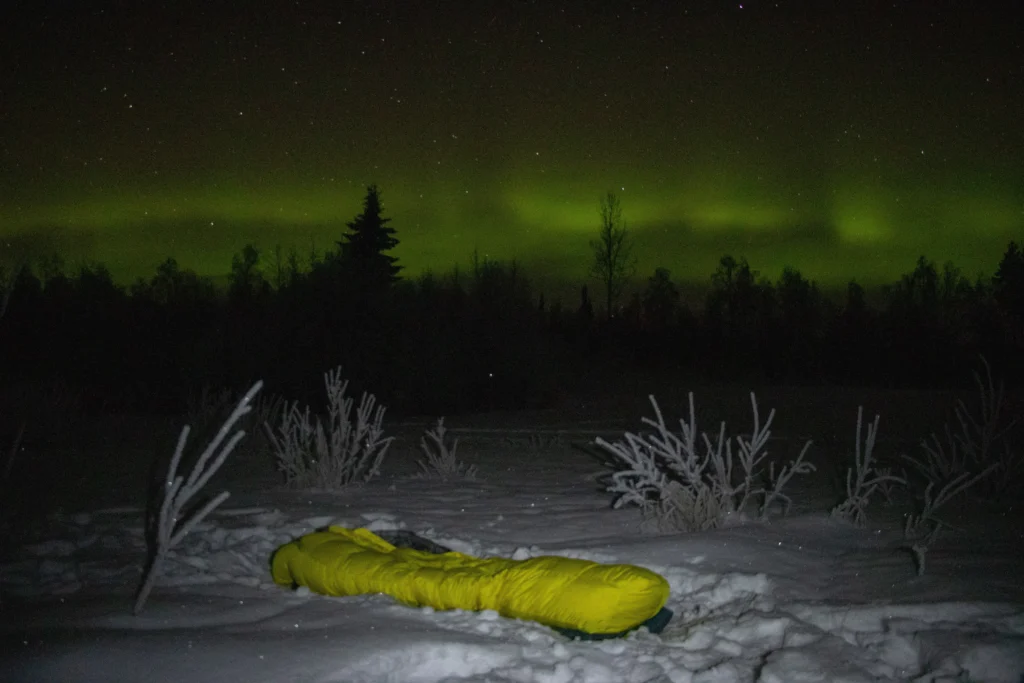 Daar valt weinig over te zeggen denk ik? Toen ik lekker warm in mijn slaapzak lag, waren er ontelbaar veel sterren. Een heldere hemel, wat natuurlijk een goed voorteken is. Later zorgde het noorderlicht nog voor een prachtige show, waar ik van kon genieten vanuit mijn bed. Waanzinnig!
