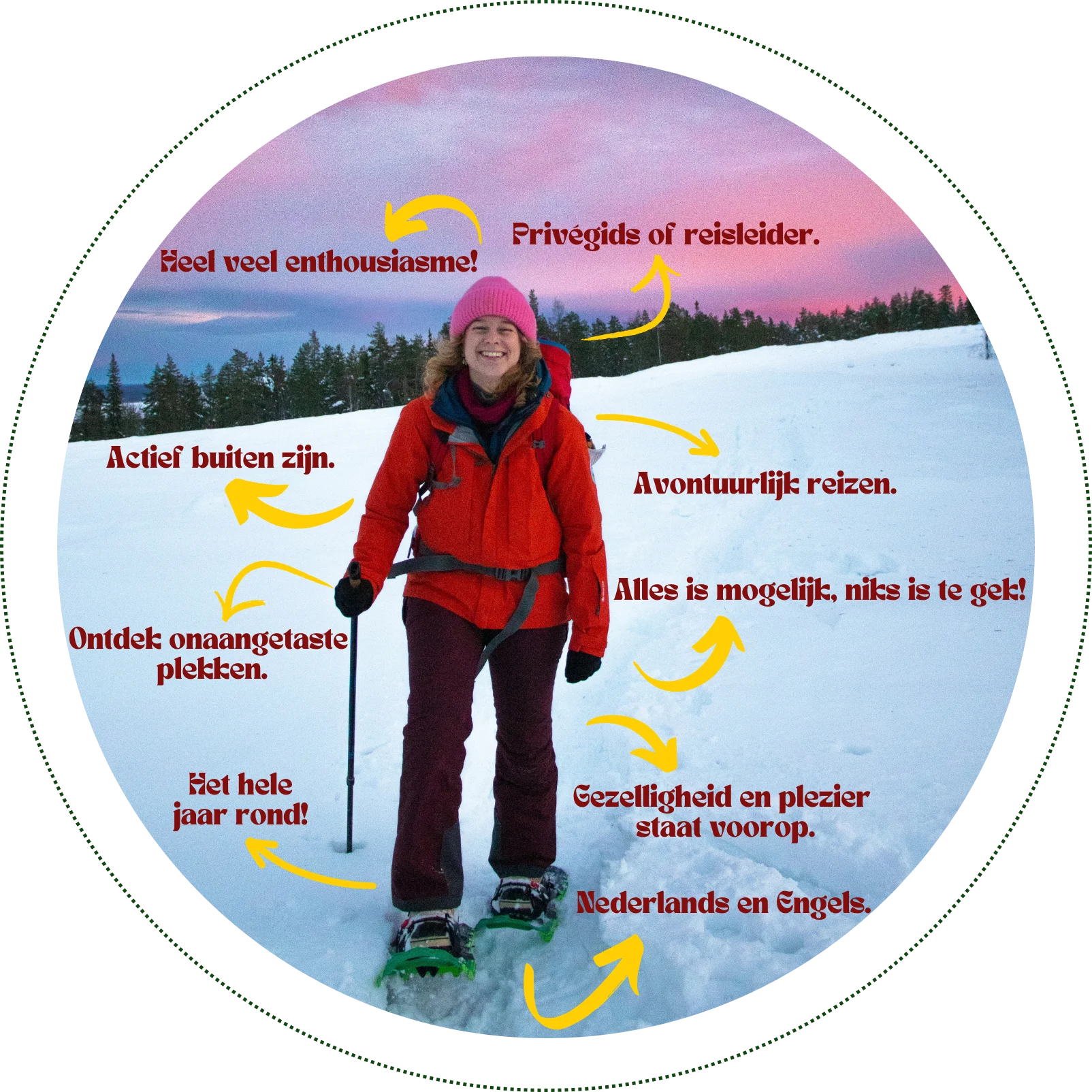 Dat maakt ook dat al jaren als natuurgids werk. Ik begeleid groepen variërend van twee personen (dus privé tours) tot 200 personen (veelal bedrijven). De activiteiten die ik doe zijn ook heel verschillend. Van een week lang hiken door de bergen tot een sneeuwscootertocht over de bevroren zee. De combinatie hiervan is het allerleukste wat er is!